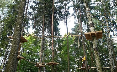 Vzhůru do korun stromů, vyzkoušíme naše dovednosti nasbírané na táborech a schůzkách a pokusíme se zdolat tenhle provazo-vynález!